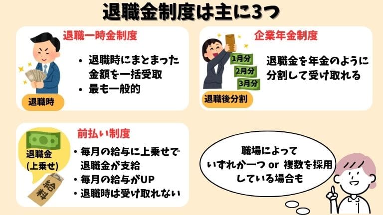 ただし、退職金制度は法律で義務化されていないため、職場によっては退職金がない場合もあります。