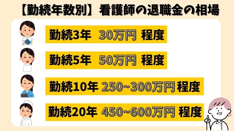 看護師の退職金相場は、勤続年数や働く職場によって大きく異なります。